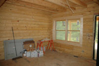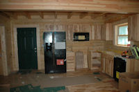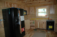 The inside of the cabin has the following amenities: knotty Pine interior walls, Walnut Floor (First Floor) Hickory kitchen cabinets, Corian like counter tops, Dish washer, Microwave, and soon disposal. Its tough to ruff it in the woods. |