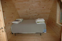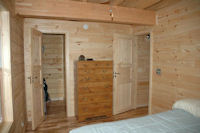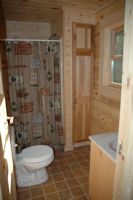 The other upstairs bedroom. This is the larger of the two. The room that appears to be a closet was plumbed for a half bath before the walls were installed. I’ve since completed this room as a half bath so the upstairs guests don’t have to make the trip downstairs in the middle of the night to use the facilities. Well they could use the privy if they were so inclined to walk out into the campground!! It does get dark at night and there are bears out there!