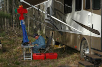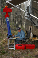 Captain Bob “K8RLR” operating CW from the campground. Bob is also a pilot. Thus the name of “Captain Bob”. "Of this group we have 6 ham radio operators. [W8EB, W8DCV, K8RLR KD8CEN, K8RLM and W9MSU].