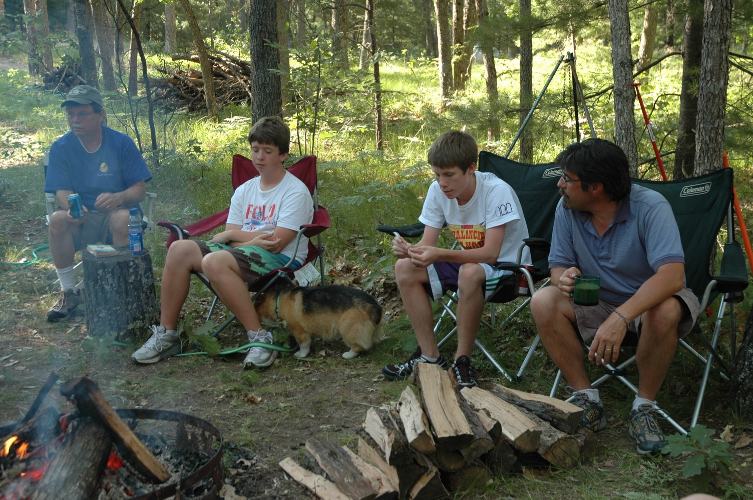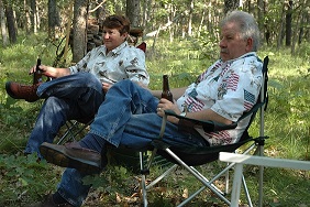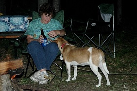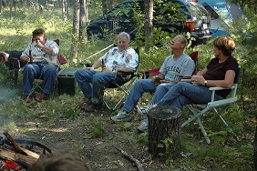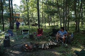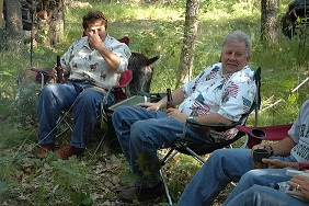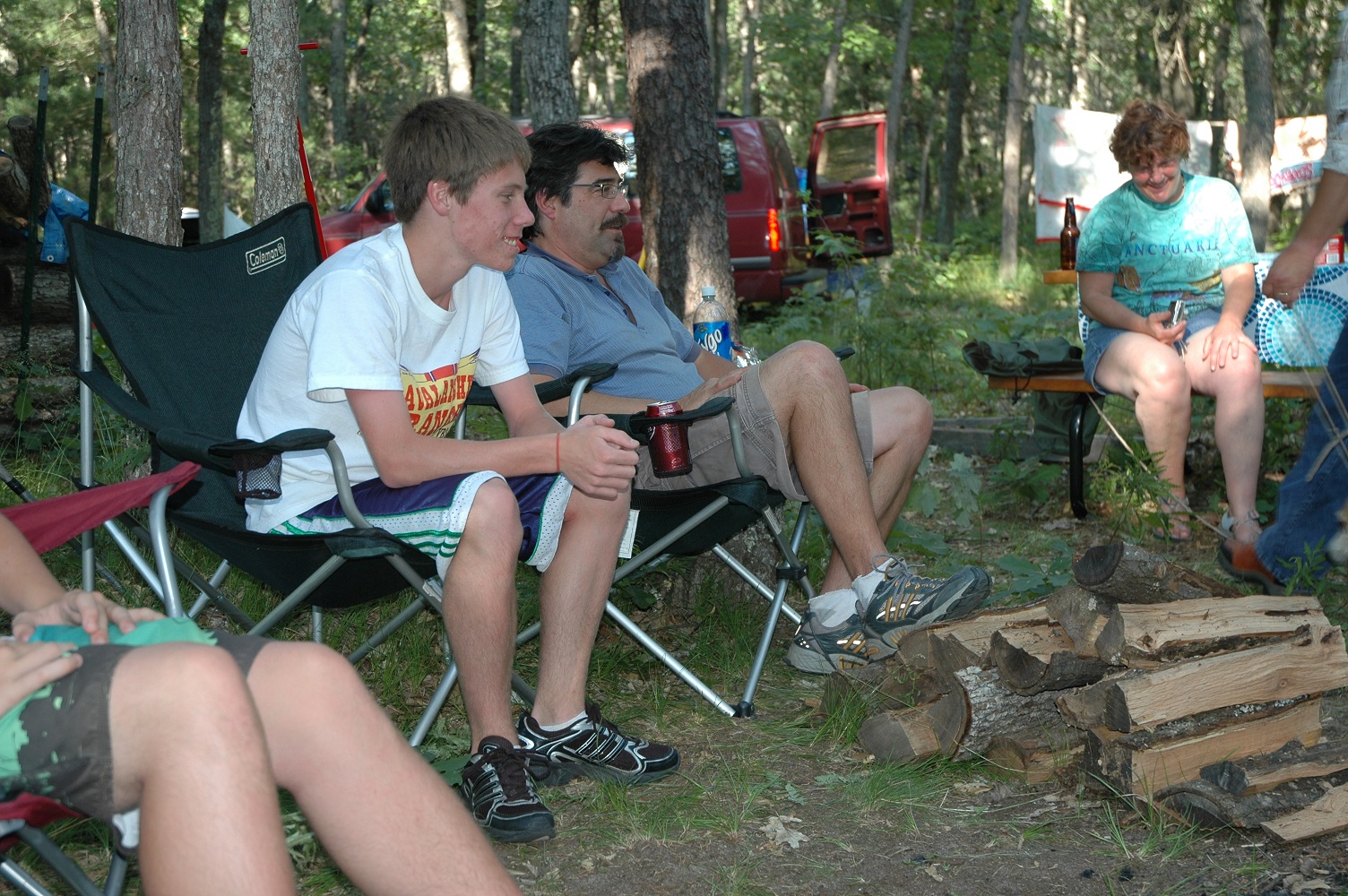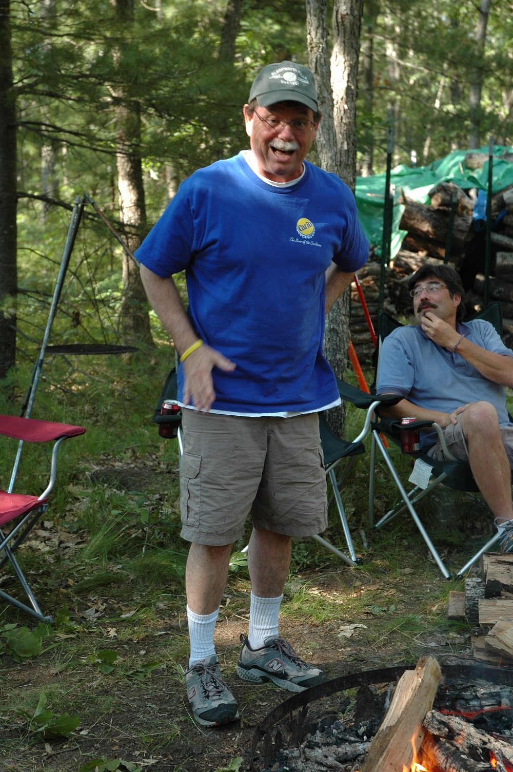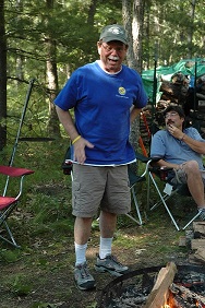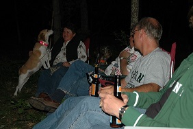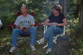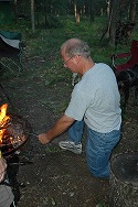 | Brad keeping an eye on the fire. Someone has to do it. | | Robert making sure their's enough firewood. | | Bob and Carolyn discussing tonights activities. | |