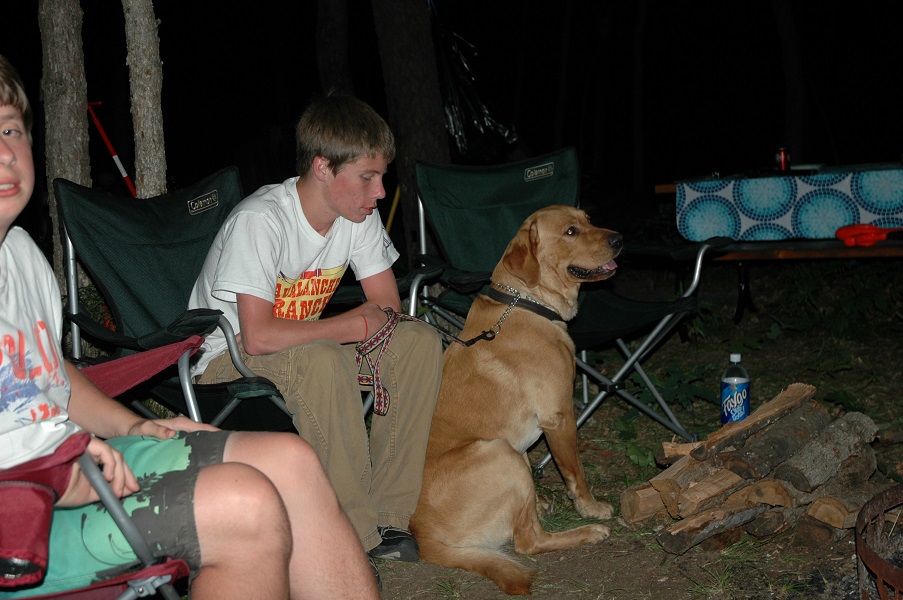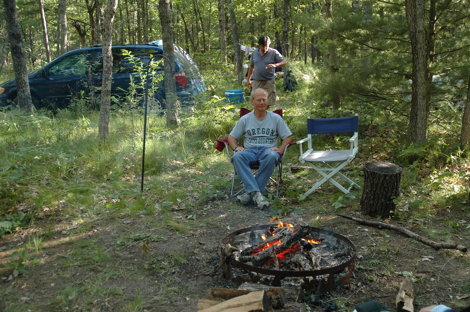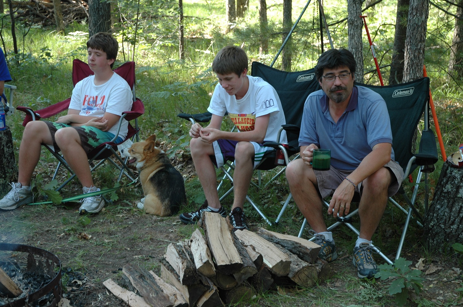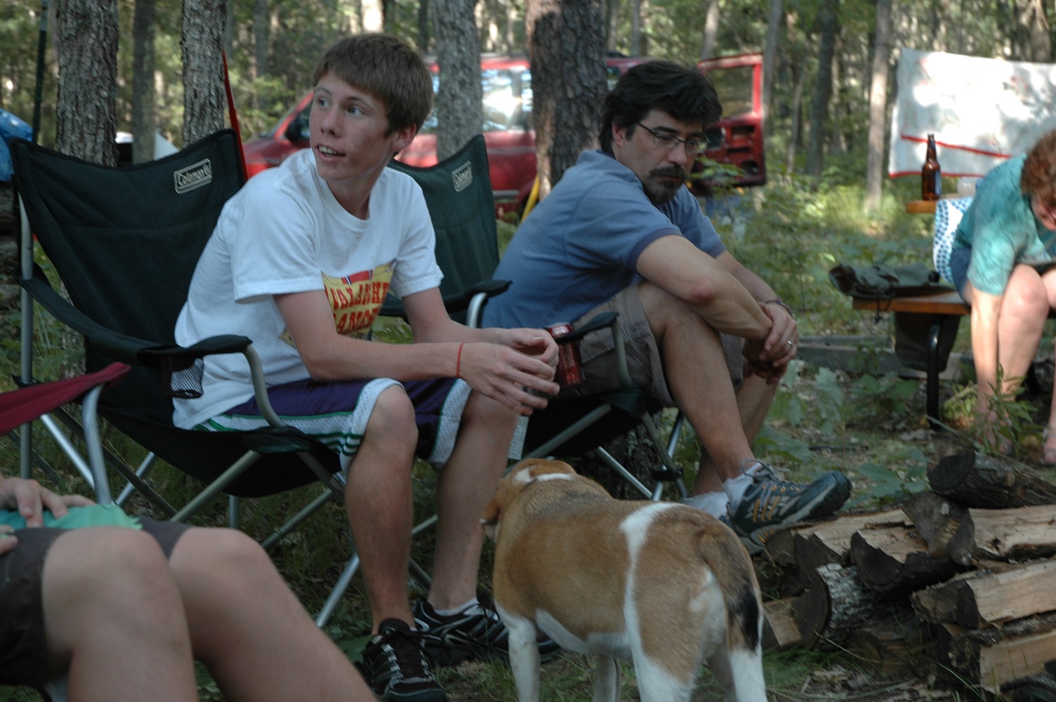 | Brad keeping an eye on the fire. Someone has to do it. | | Robert making sure their's enough firewood. | | Bob and Carolyn discussing tonights activities. | |