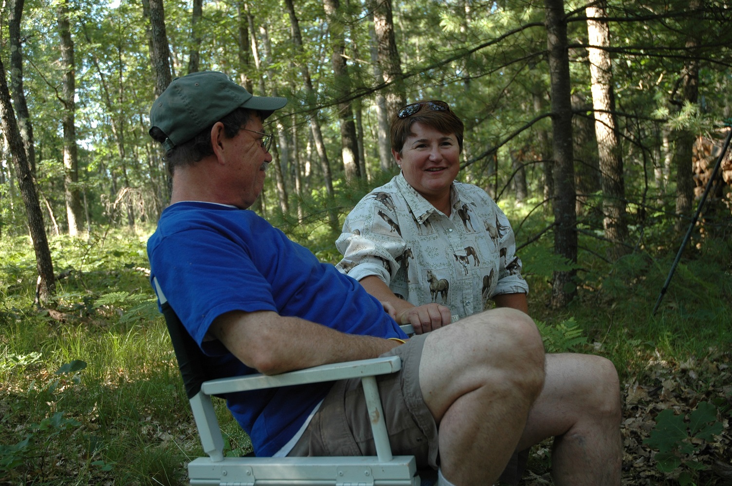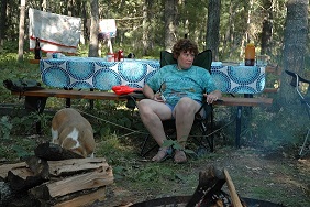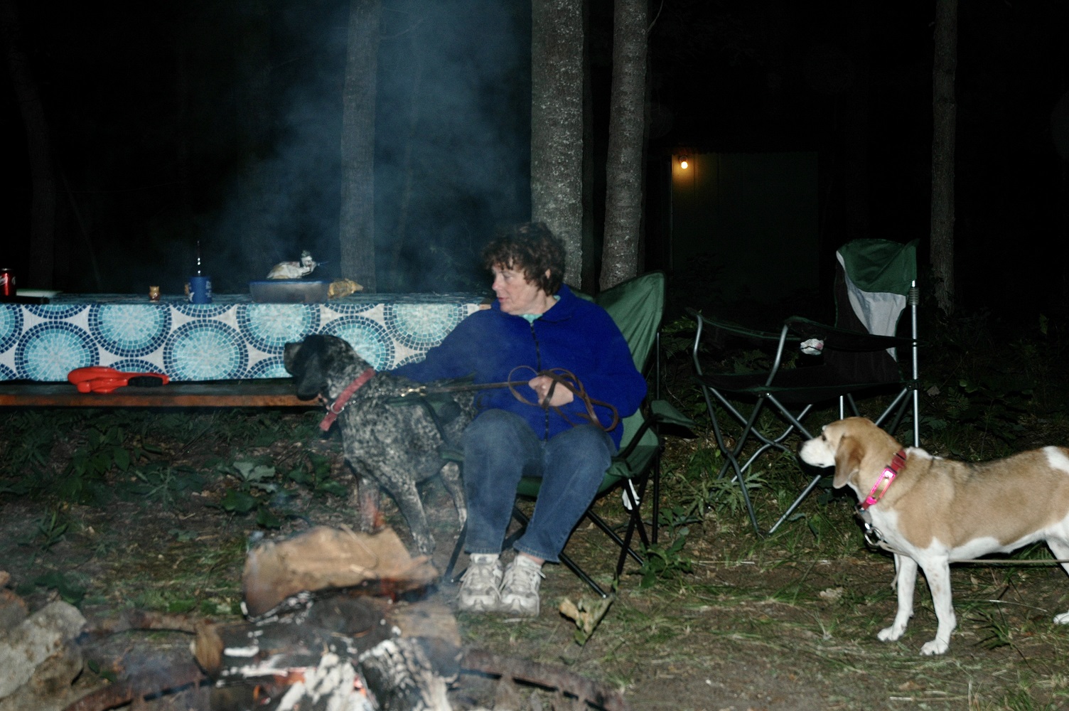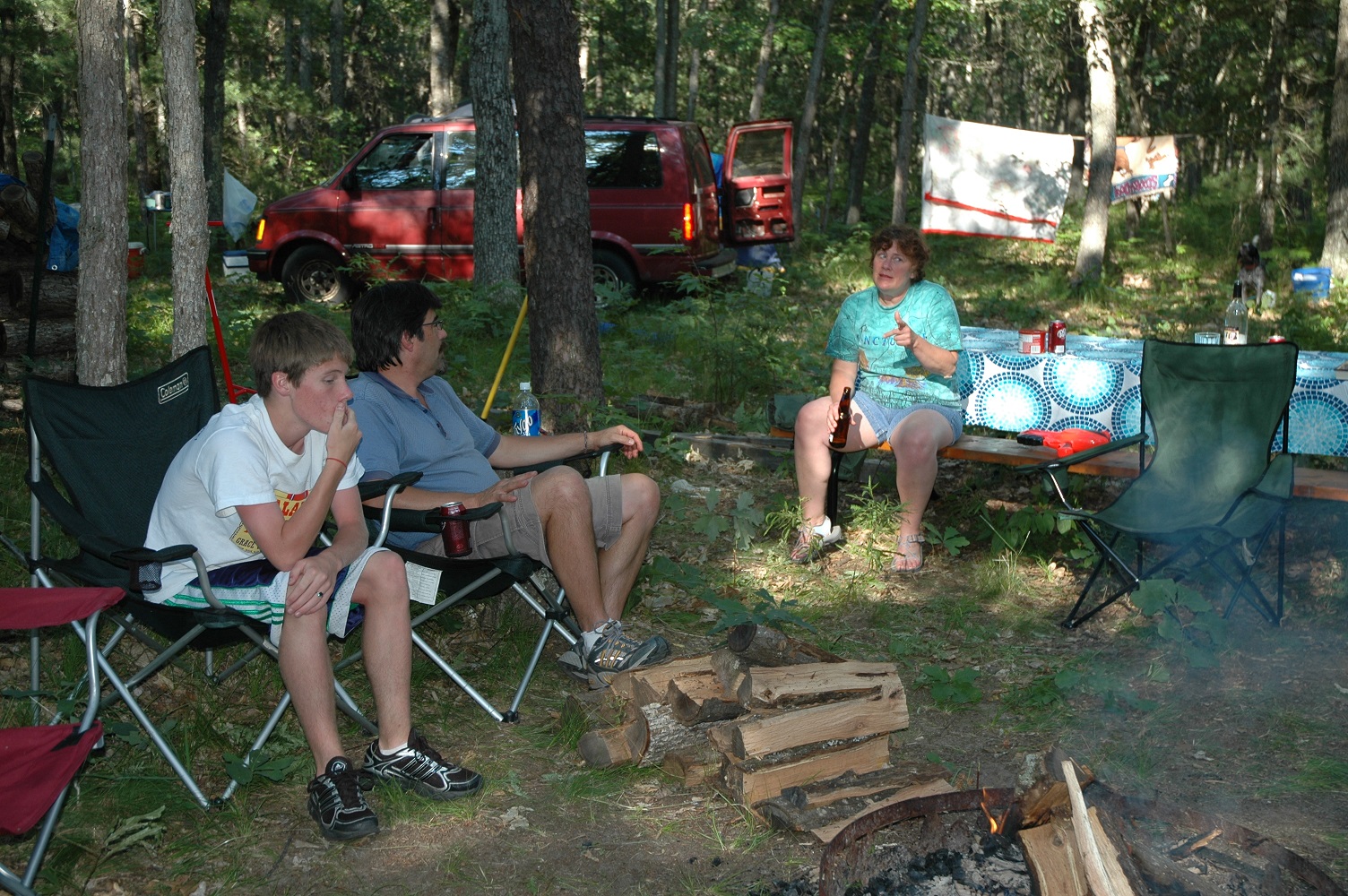 | | Robert, Cheryl and Jordon enjoying the campfire. | | Cheryl attentively listening to the creatures in the woods. | |