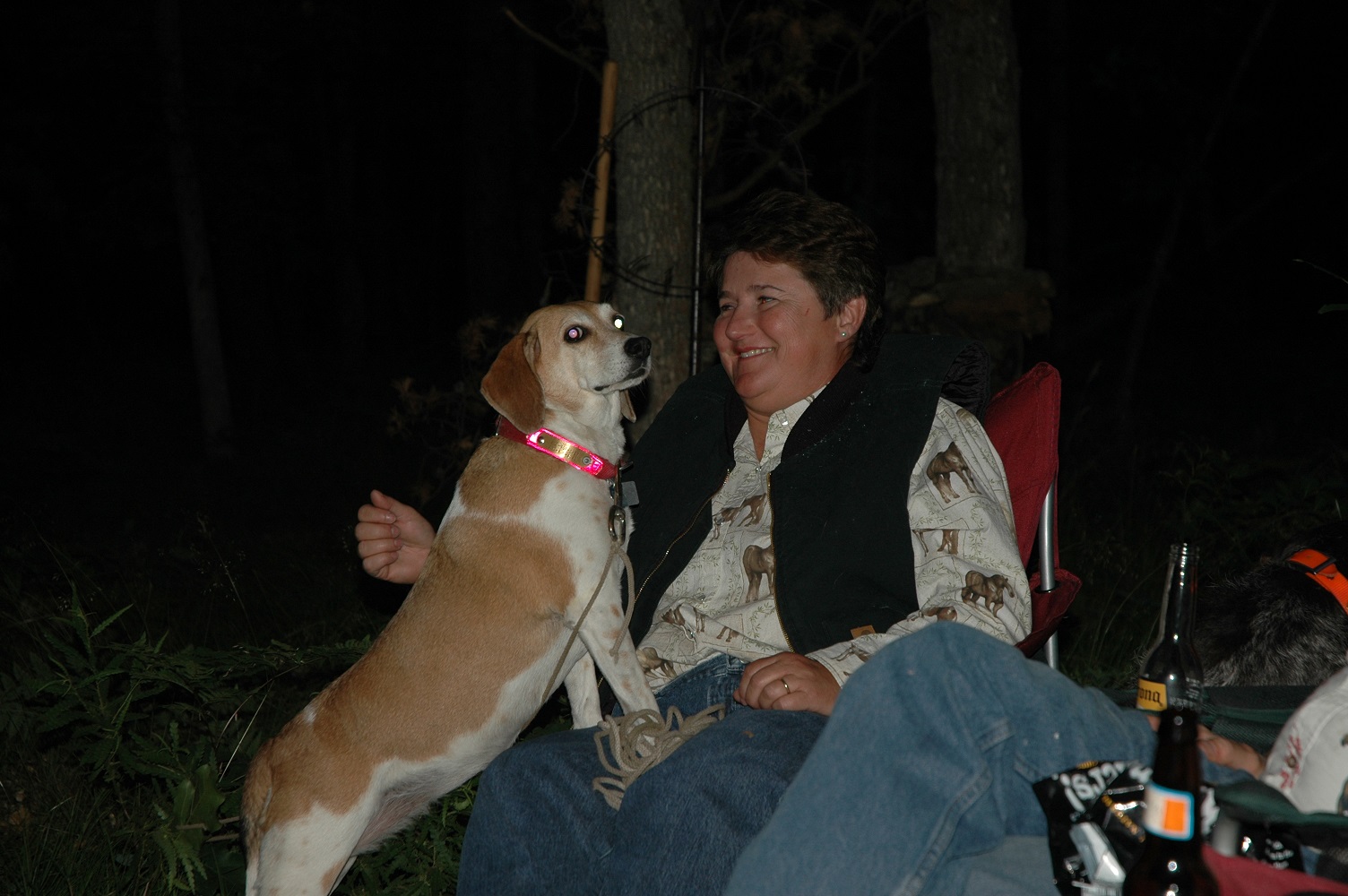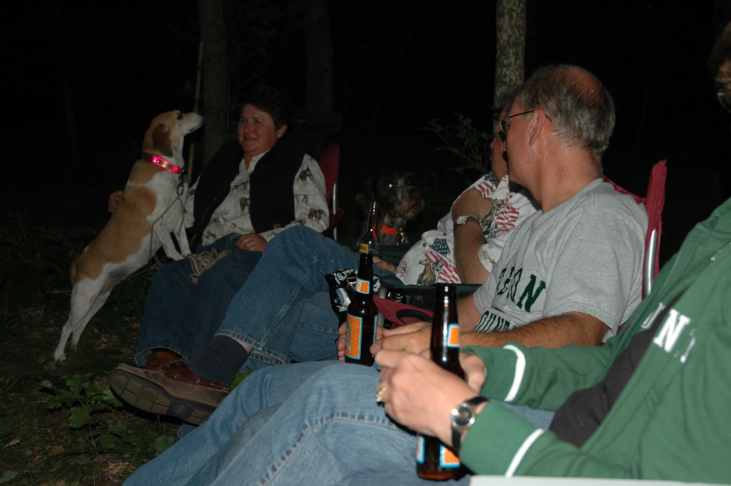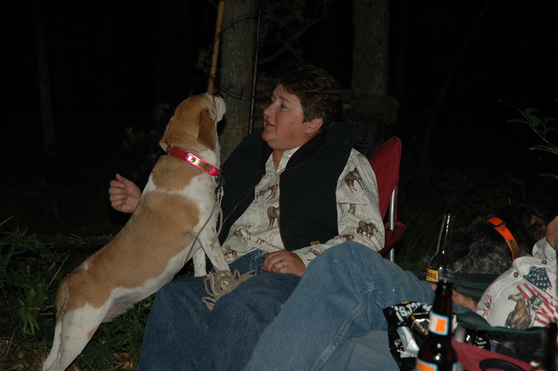 | | Robert, Cheryl and Jordon enjoying the campfire. | | Cheryl attentively listening to the creatures in the woods. | |