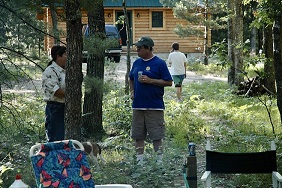 | Who knows what Bob is up to this time. | | Jordon, Robert and Cheryl planning the next activity. | | Bob and Carolyn telling stories. | |