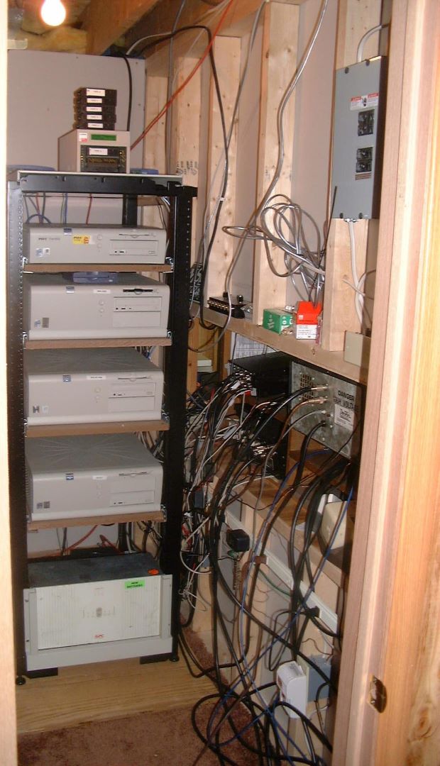 You can find me on the air during the summer mounts operating from my Motorhome while on the many camping trips. While camping I utilize my FT dx 1200 with a Hustler BT5-TV antenna. This configuration has performed very well in the many remote locations we've visited. I also put up a homebrewed 20/40 dipole where I can find trees in the campsite. The design concept of the shack allows for easier access to the radio and computer connections. The wiring closet provides easy access without disturbing all the equipment. I'm not quite sure why you'd need this type of access since this is a "wireless hobby" Hi hi.